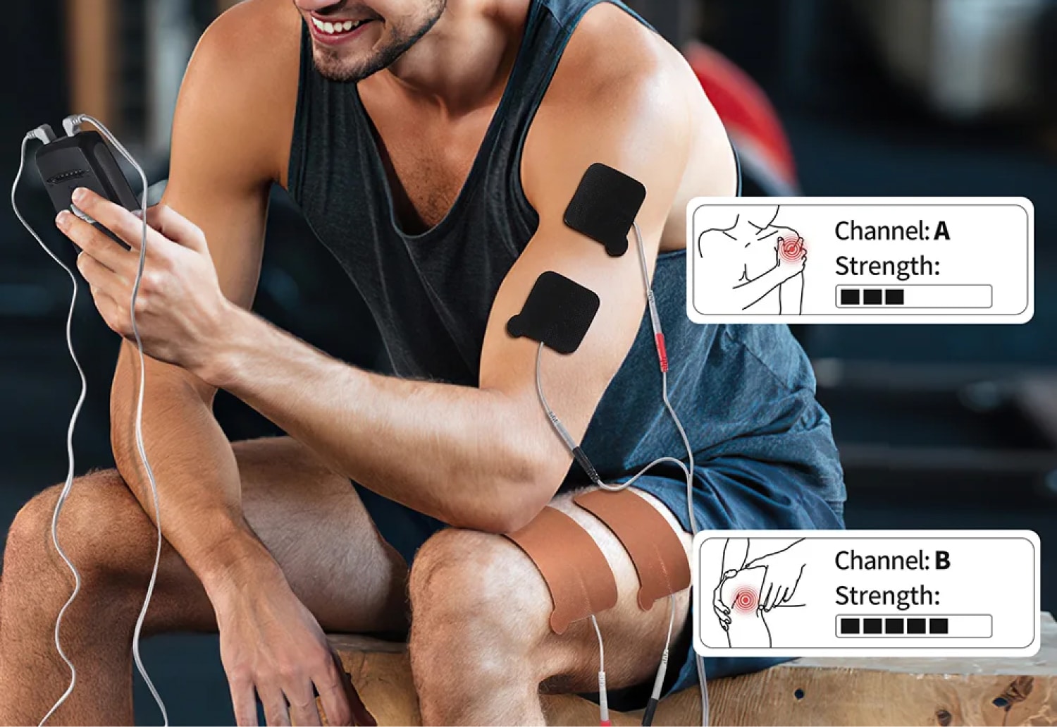 Die zwei unabhängigen Kanäle ermöglichen die gleichzeitige Stimulation verschiedener Muskelgruppen. Dies macht das Gerät besonders effizient für Ganzkörperanwendungen oder kombiniertes Training.